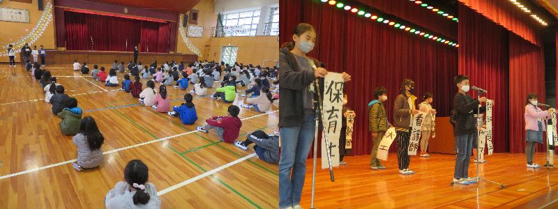 本日の6時限目、体育館で4年生の「2分の1成人式」が行われました。