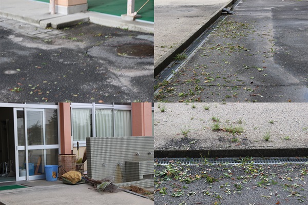 学校内の「落ちた枝、落ち葉、流れ出た泥」を掃除していました。