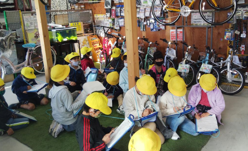 2の1と2の2が町たんけんでお花屋「オリーブ」さんと自転車屋「マルヤス」さんに出かけました。見たこと、聞いたことをしっかりとメモをしました。2の3と2の4は26日木曜日にお世話になります。