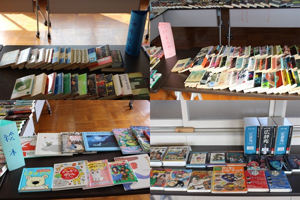 日進中学校恒例の「古本市」が、本日、昼放課から「生徒向けに!」始まります。
