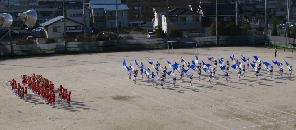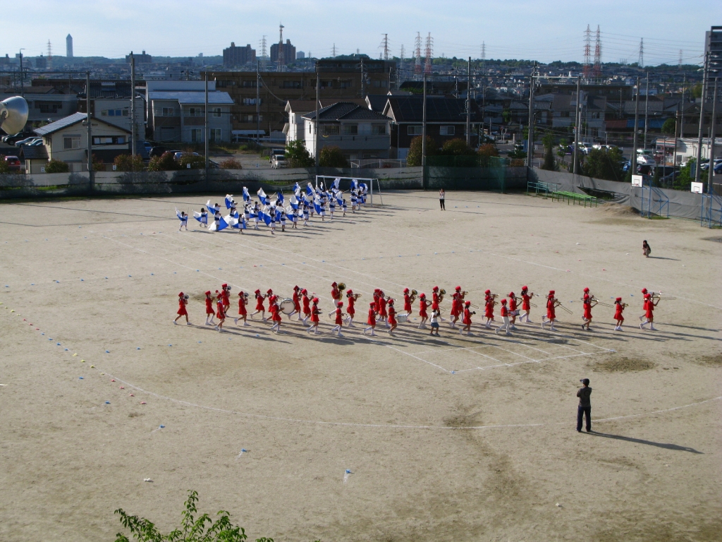 午後も予報通りで、晴天の下金管バンド部、カラーガード部がリハーサルを行いました。