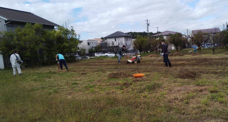 本日24日土曜日、先週悪天候で延期していたおやじ友の会の皆様による、夢畑の作業が行われました。お休みの中、本当にありがとうございます。草刈り、整地が終わりました。来週も引き続き、畝づくりや周辺の整地などを続けていただけます。赤池小の夢が広がります。
