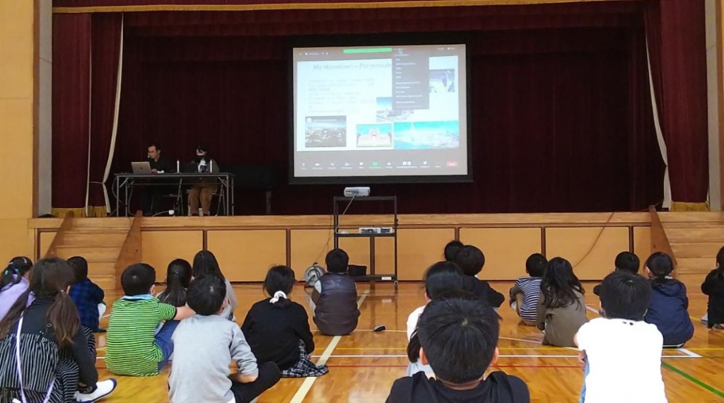 本日の5時限目、4の1、4の2の皆さんと名古屋外国語大学の留学生との交流会を行いました。と言っても、留学生のお二人が赤池小に来てくれたのではなく、Web会議アプリZoomを使っての交流会です。留学生のお二人はそれぞれイギリスとフランスから話してくださいました。時差がありますし、距離は遠く離れています。でも遠くの人とすぐにつながる時代になりました。