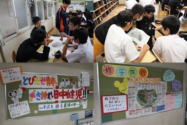 首都東京を学ぶ2日目の班別行動も大事ですが,ディズニーのような「観光」も,楽しみの一つです。 生徒はととても楽しそうに話し合っていました。 当日,今日のような雨が降らないことを祈ります。 <文責 神原 裕之>