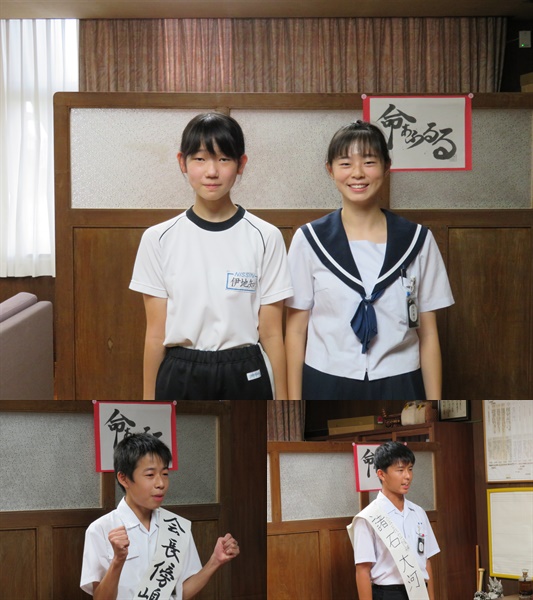 (上:司会を務めた選挙管理委員の3年生 下:会長候補の2名)