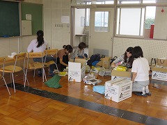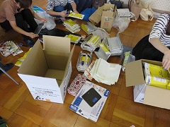 13:00からPTAの厚生委員会の方が集まって、テトラパックの整理を行いました。