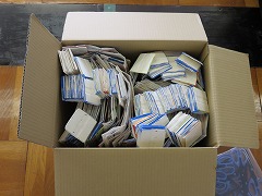 作業してみると2箱ぎっしり詰めることができました。1箱は10キロ以上になるように詰め込みますが、パックを丁寧に切り開き、上手に詰めてくださっていました。ご家庭でもテトラパックの回収にご協力いただけると日進中学校としては大変ありがたいです。(一度にたくさんの運搬は大変ですので、、スーパーの袋に入れてお子様に持たせていただいてもかまいません。)