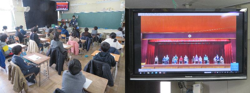 各教室で立候補者の演説を動画で視聴し、その場で投票することにしました。演説動画は選挙管理委員会が15日(月)・16日(火)の「にこにこタイム(25分放課)」中に体育館で撮影しました。