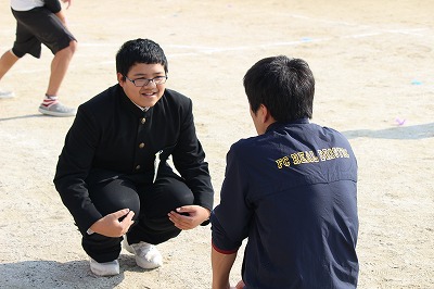 秋晴れの昼下がり、陽気に誘われて「多くの子どもたち」が運動場で遊んでいました。