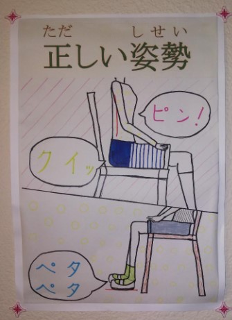 朝の放送集会で保健委員会から正しい姿勢についての呼びかけがありました。「一の型、両足を床にぺたぺた」、「二の型、腰をくいっ」、「三の型、背中をぴん」。保健委員の指示に合わせて取り組みます。よい姿勢は健康につながります。肩こりや背中の張りから体調不良ををうったえる子供たちもいます。寒さで縮こまる季節ですが、「ぺたぺた、くいっ、ぴん」を全校で取り組みます。ご家庭でもご協力ください。我々大人もついついスマホをのぞきこんで姿勢がよくないことが多いです。気をつけないといけないです。
