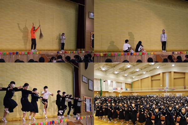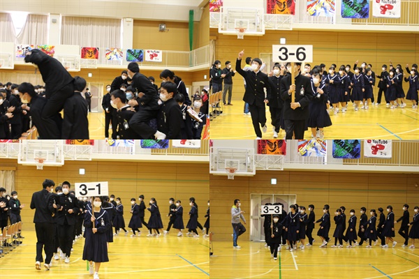 体育館での時間を「できる限り短く」ということで、「縦割り応援パフォーマンス」