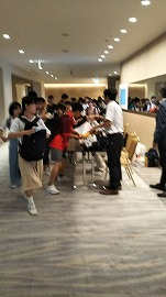 情報によると、夕食後に有名人が日進中学校の会場に現れたとか・・・。