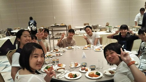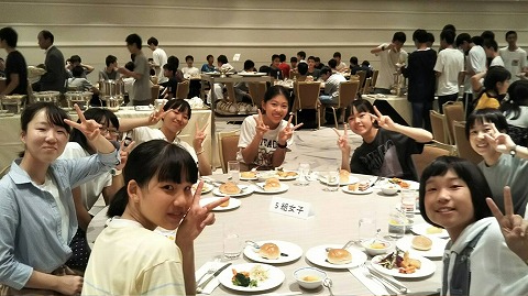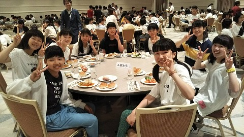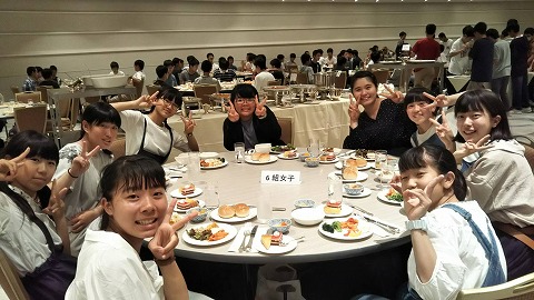 夕食はクラスごとにテーブル席に着き、バイキングだったようです。