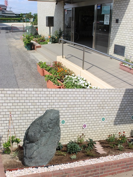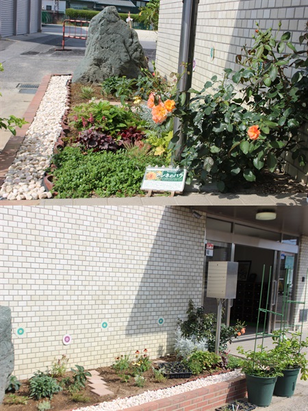 「けやき」学級が授業で行っていた「来賓玄関前花壇」が完成しました。