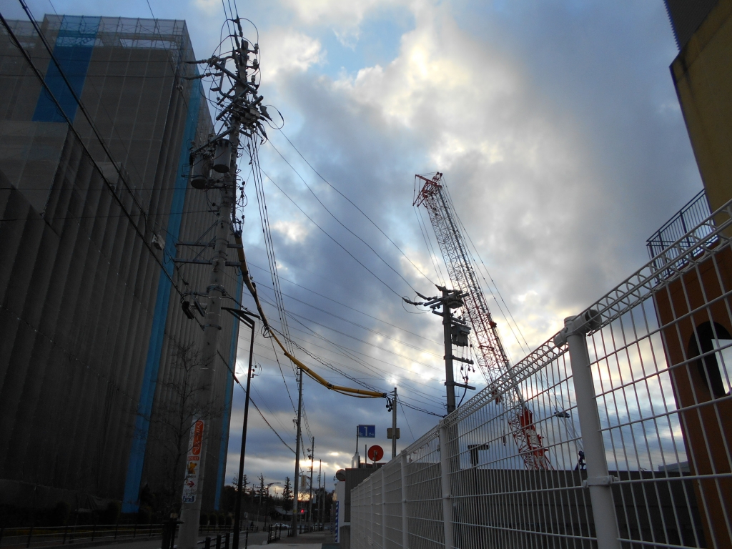 右の画像はとなりのマンション工事で使われているクレーンです。これを人が操っているのかと思うと「改めて、すごいなあ」と思います。人間が開発したものが正しく使われている一例と思います。