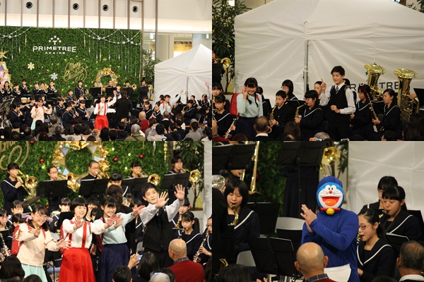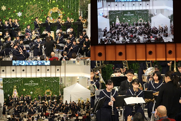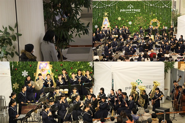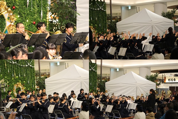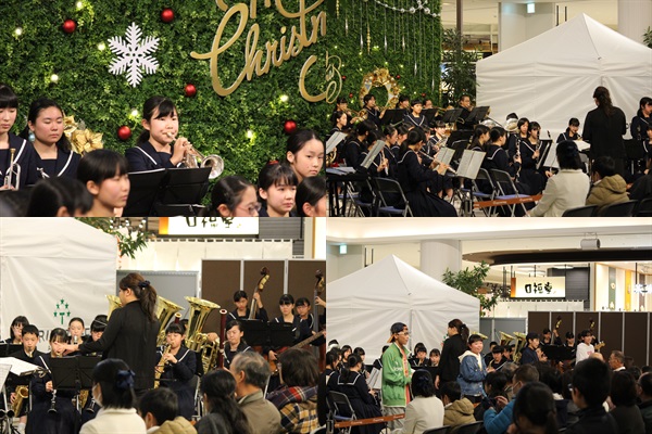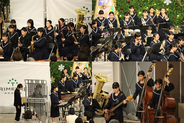 本日、赤池駅の「プライムツリー」において吹奏楽部が「演奏」を行いました。