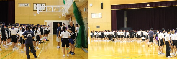 本日、「雨」のため予行練習が途中で終わりました。