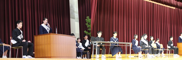 本日5時間目を使って、「生徒会役員立会演説会」を行いました。