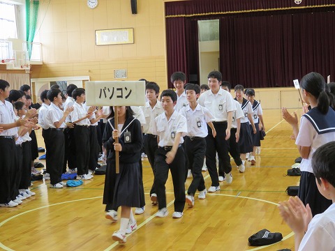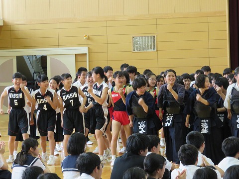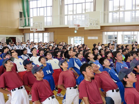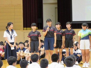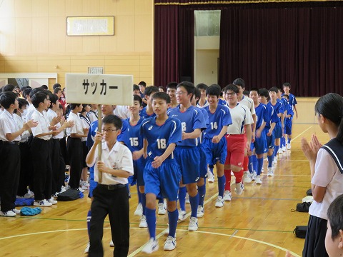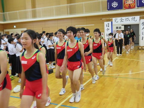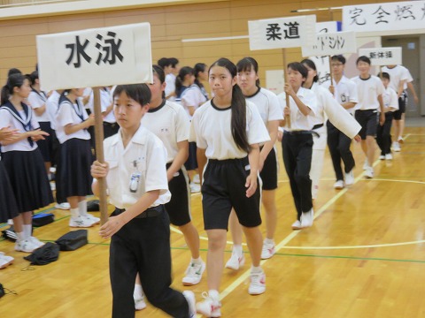各学級、授業の先生方の先導のもと、静かに集合することができました。
