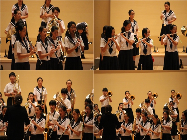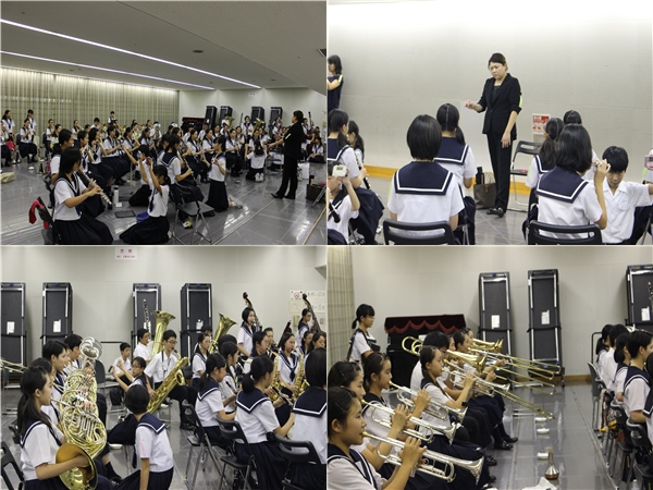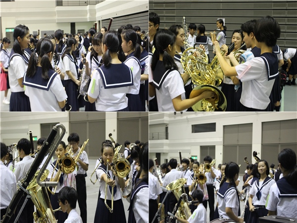 出演順が「1番、2番」の学校だけ「舞台上での舞台リハーサル」が許されています。10:15からの演奏ですが、「9:00~9:15」の間「舞台リハーサル」