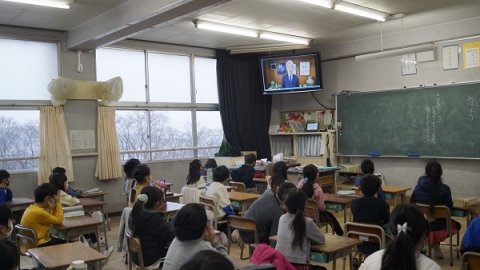 今年度は、コロナの関係で、一度も体育館で全校が集まっての朝会ができませんでした。今日も各教室にてTV朝会です。