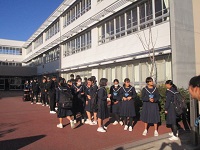 8:30、本日午後に行われる音楽発表会に参加する3年代表クラスを励まし送る会を体育館で行いました。