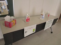 昇降口には、しばらく消毒液を常設します。
