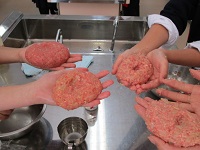 今日は手作りハンバーグを焼いて試食するという、楽しみにしていた授業です。