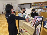 図書委員会は、常時活動として本の貸し出しと、返却された本の整頓を行っています。本校の蔵書総冊数は、およそ11,000冊を超え、使用する側には魅力たっぷりですが、管理は大変です。