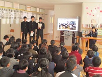 日課、教科授業、生徒会活動、学校行事、部活動等、小学生が聞きたいことを事前に把握し、画像を見せながら上手に説明できました。