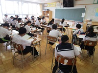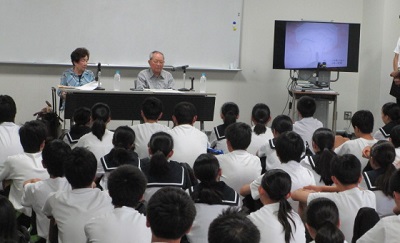 3年生は大会議室に集まり、「戦争体験を聞く会」を開きました。