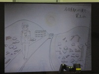 講師には、日進市在住の幸村様にお越しいただき、戦争中のスケッチを見せていただきながらお話を聞きました。